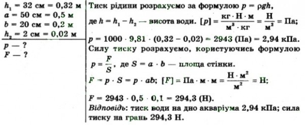 тиск води на дно акваріума та вагу води. З якою силою вода