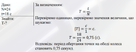 За 18 секунд колесо автомобіля здійснило 24 оберти. Визначте