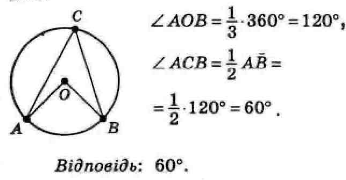 Знайдіть міру вписаного кута, який спирається на третю