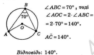 Міра вписаного кута 70°. Знайдіть кутову міру дуги, на
