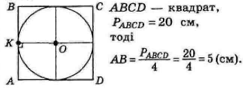 Периметр квадрата дорівнює 20 см. Знайдіть радіус кола,