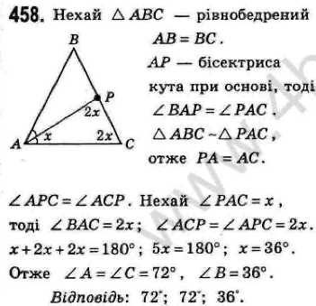 Знайдіть кути рівнобедреного трикутника, якщо бісектриса