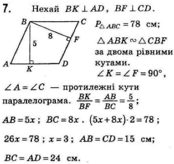 перпендикуляри завдовжки 5 см і 8 см. Знайдіть сторони