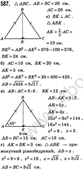а) висоту, проведену до основи, якщо бічна сторона і основа