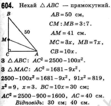 = 50 см взято точку М таку, що А \ / = 41 см і СМ : МВ =