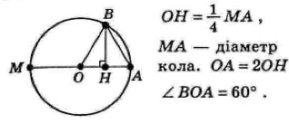 Знайдіть кут між радіусами кола, якщо проекція одного