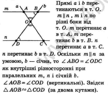 Дві прямі перетинаються в точці О, їх перетинають дві