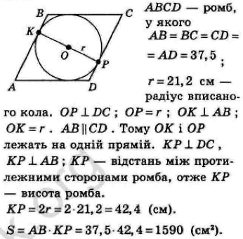 Сторона ромба дорівнює 37,5 см, а радіус вписаного кола