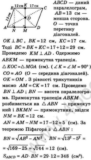 Менша сторона паралелограма дорівнює 13 см. Перпендикуляр,