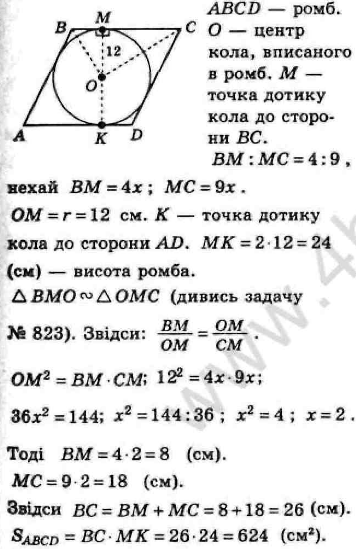 відрізки, пропорційні числам 4 і 9. Знайдіть площу ромба,