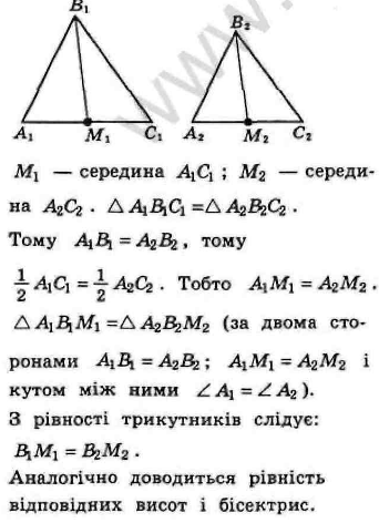 Доведіть, що відповідні медіани (бісектриси, висоти) рівних