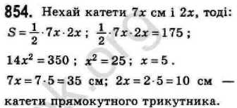 Площа прямокутного трикутника дорівнює 175 см2. Обчисліть