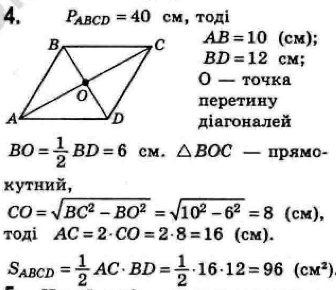 Знайдіть площу ромба, якщо його периметр 40 см, а одна