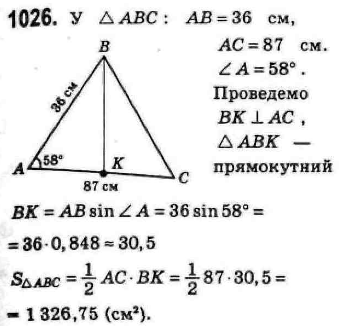 між ними — 58°. Визначте площу трикутника