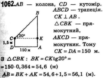 20°. Висота кутоміра дорівнює 1,5 м. Знайдіть висоту колони.