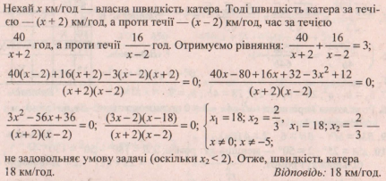 шлях 3 год. Знайдіть власну швидкість катера, якщо швидкість течії 2 км/год