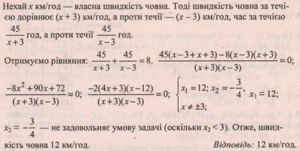 туди і назад долає за 8 год. Знайдіть власну швидкість човна, якщо швидкість