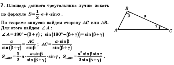 Найдите площадь треугольника, сторона которого равна а, а прилежащие к ней углы равны ß и у
