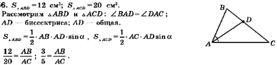 Отрезок AD — биссектриса треугольника АВС, площадь треугольника ABD равна 12 см2, а треугольника ACD — 20 см2, Найдите отношение стороны AB к стороне АС