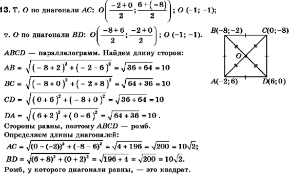 Докажите, что четырехугольник ABCD с вершинами в точках А (-2; 6), В (-8; -2), С (0; -8) и D (6; 0) является квадратом