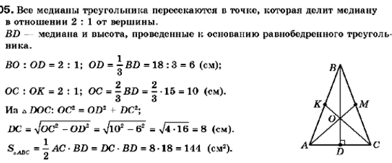 Медианы равнобедренного треугольника равны 15 см, 15 см и 18 см.