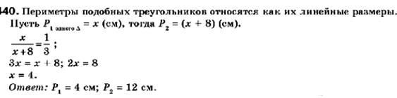 Периметр одного из двух подобных треугольников на 8 см больше периметра другого треугольника. Найдите периметры данных треугольников, если коэффициент подобия равен 1/3