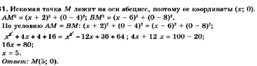 На оси абсцисс найдите точку, равноудаленную от точек А (-2; 4) и В (6; 8).