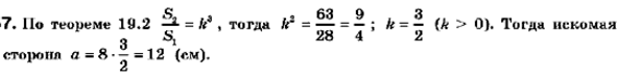 Площади двух подобных треугольников равны 28 см2 и 63 см2. Одна из сторон первого треугольника равна 8 см. Найдите сторону другого треугольника, соответствующую данной стороне первого