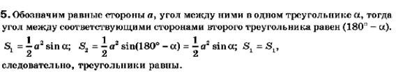 Два треугольника имеют по две равные стороны, а сумма углов между соответственно равными сторонами этих треугольников равна 180°. Докажите, что данные треугольники равновелики.