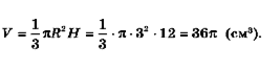 Найдите объем конуса, высота которого равна 12 см, а радиус основания — 3 см