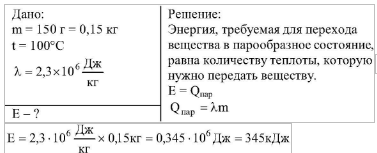 Вычислите, какое количество энергии потребуется для обращения воды массой 150 г в пар при температуре кипения, равной 100 °С?