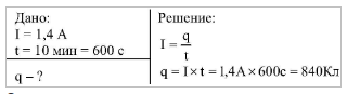 Сила тока в цепи электрической плитки равна 1,4 А. Какой электрический заряд проходит через поперечное сечение ее спирали за 10 мин?