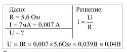 Телеграфный провод длинной 1 км имеет сопротивление 5,6 Ом. Сила тока в проводе 7 мА. Каково напряжение на концах провода?