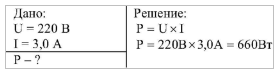 Электроплитка рассчитана на напряжение 220 В и силу тока 3,0 А. Определите мощность тока в плитке