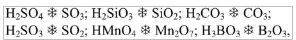 Напишите формулы оксидов, гидратами которых являются следующие кислоты: H2SO4, H2SO3, H2CO3, H2SiO3, HMnO4, H3BO3