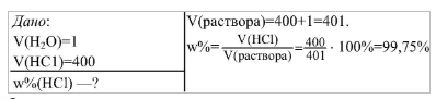 В одном объеме воды при комнатной температуре растворяется примерно 400 объемов хлороводорода. Вычислите массовую долю хлороводорода в процентах в полученном растворе