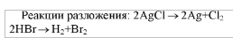 Из приведенных схем реакций выпишите только те, которые относятся к реакциям разложения. Вместо знаков вопроса напишите формулы соответствующих веществ и расставьте коэффициенты. а) Cu + ? → CuO в) KBr + Cl2 → ? + KCl б) AgCl → ? + Cl2 г) HBr → Br2 + ?