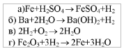 Напишите уравнения реакций: а) водорода с кислородом; б) водорода с оксидом железа(II); в) алюминия с соляной кислотой