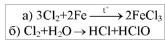 Напишите уравнения реакций: а) между хлором и водородом; б) между хлором и железом. Укажите условия протекания этих реакций, а также окислитель и восстановитель