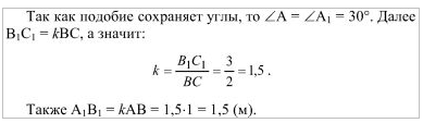 У подобных треугольников АВС и А1В1С1 ∠А = 30°, АВ = 1 м, ВС = 2 м, В1С1 = 3 м. Чему равны угол А1 и сторона А1В1?