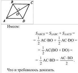 Докажите, что площадь ромба равна половине произведения диагоналей