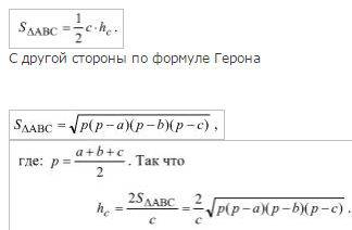 Стороны треугольника а, b, с. Найдите высоту треугольника, опущенную на сторону с