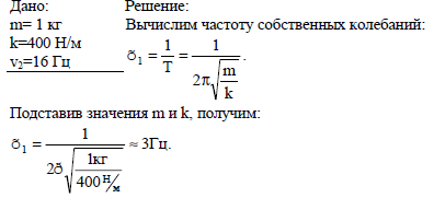 К концу пружины маятника, груз которого имеет массу 1 кг, приложена переменная сила, частота колебаний которой равна 16 Гц. Будет ли при этом наблюдаться резонанс, если жесткость пружины 400 Н/м?