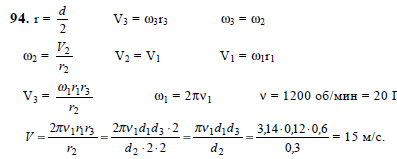 Циркулярная пила имеет диаметр 600 мм. На ось пилы насажен шкив диаметром 300 мм, который приводится во вращение посредством ременной передачи от шкива диаметром 120 мм, насаженного на вал электродвигателя. Какова скорость зубьев пилы, если вал электродвигателя совершает 1200 об/мин?