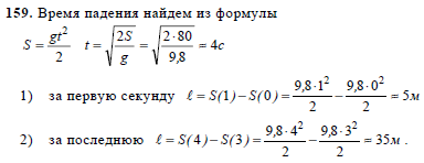 Тело свободно падает из состояния покоя с высоты 80 м. Каково его перемещение в первую и последнюю секунду падения?