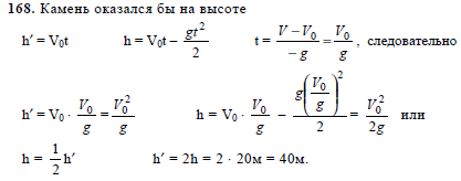 Брошенный вертикально вверх камень достиг высоты 20 м. На какой высоте он оказался бы к этому моменту времени, если бы отсутствовала сила тяжести?