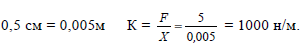 Найдите жесткость пружины, которая под действием силы 5 Н удлинилась на 0,5 см