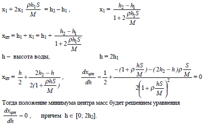 Центр тяжести системы находится между h1 и h2 и разбивает х на х1 и х2, причем x1 ρ2hS = x2M, x1 + x2 = x