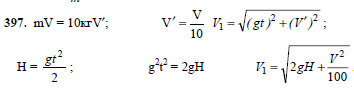 С высоты Н падает шар. Когда он пролетал мимо окна, находящегося на высоте H/2, в него попала пуля, вылетевшая из ружья в горизонтальном направлении. Пуля застряла в центре шара. С какой скоростью шар упадет на землю? Пуля имеет массу, в 10 раз меньшую, чем масса шара. Ее скорость в момент попадания в шар равна v