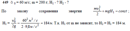 Стрела вылетает из арбалета вертикально вверх со скоростью 60 м/с. На какую высоту поднимется стрела, если ее масса равна 200 г? На какую высоту поднимется стрела вдвое большей массы? Потерями энергии пренебречь